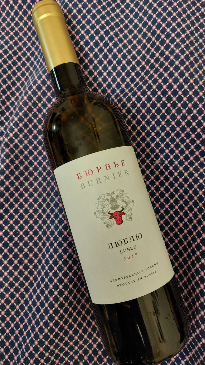 Я совсем не пробовал вин винодельни Бюрнье. Некоторое время назад попробовал красное сухое вино из серии "Люблю" и за свои деньги это было отлично. К сожалению, не было возможности сделать заметки, поэтому его обзора на канале нет. Но помятуя про крайне положительный опыт с красным, я решил при оказии попробовать белое сухое вино из серии Люблю и сегодня расскажу Вам про свои впечатления от него. Вино продают в бордосской бутылке темного стекла. Укупорена бутылка вполне приличной полированной агломерированной пробкой diam5. Капсула - из весьма нетолстой фольги. Этикетка почти на всех винах Бюрнье одинаковая и суперолдскульная. Впрочем, это скорее плюс. Во-первых, вино узнается, особенно из-за контрастного красного глянцевого быка на гербе, во-вторых, бутылка производит впечатление классики. А классика это стильно, универсально и всегда в моде. Контрэтикетка, как и этикетка, с вкраплениями французского. Она коротко рассказывает историю семьи Бюрнье, глава которой, будучи гражданином Шв