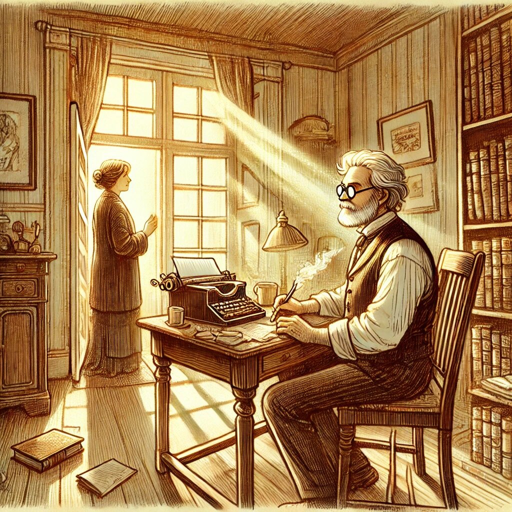 Как только хозяин остался один в комнате, он взял в руки ручку и принялся писать. Неровные буквы появлялись из-под руки творца. Белый лист спустя несколько минут исписан полностью. Поправив очки, Семён Маркович откинулся на спинку кресла с довольной улыбкой.