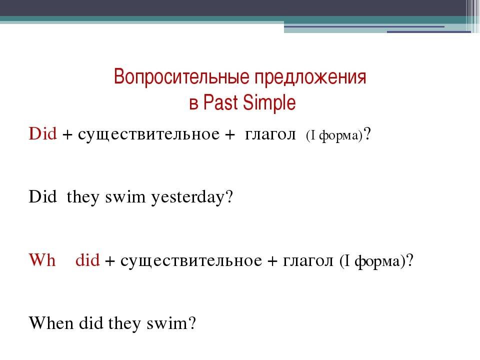 Past Simple — это время, которое используется для выражения действий, происходивших в прошлом, и завершившихся на момент речи. Вопросительные предложения в Past Simple строятся с использованием вспомогательного глагола "did" (для всех лиц, кроме третьего) и базовой формы глагола. БЕЗ МУЗЫКИ: С МУЗЫКОЙ НА ПРОГУЛКУ: Для образования вопросительных предложений в Past Simple используется структура: Эти примеры помогают понять, как строятся вопросительные предложения в Past Simple и как они могут быть использованы для обсуждения событий в прошлом. Past Simple — это время, которое используется для выражения действий, происходивших в прошлом, и завершившихся на момент речи. Вопросительные предложения в Past Simple строятся с использованием вспомогательного глагола "did" (для всех лиц, кроме третьего) и базовой формы глагола. Для образования вопросительных предложений в Past Simple используется структура: Эти примеры помогают понять, как строятся вопросительные предложения в Past Simple и ка