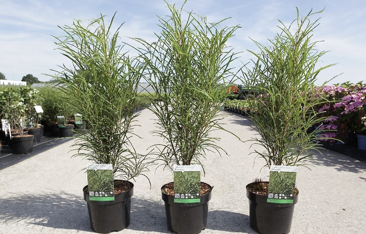 Крушина ломкая или ольховидная Файн Лайн (возможный перевод - «тонкая грань») напоминает бамбуковые заросли с привлекательной колоновидной кроной. Высота взрослого растения может быть от 1,5 до 2 - 2,5 м. и около 60 см. в диаметре. Легкий, прозрачный, изящный. Побеги многочисленные, растут вертикально. Изящные ажурные листочки густо обрамляют побеги.