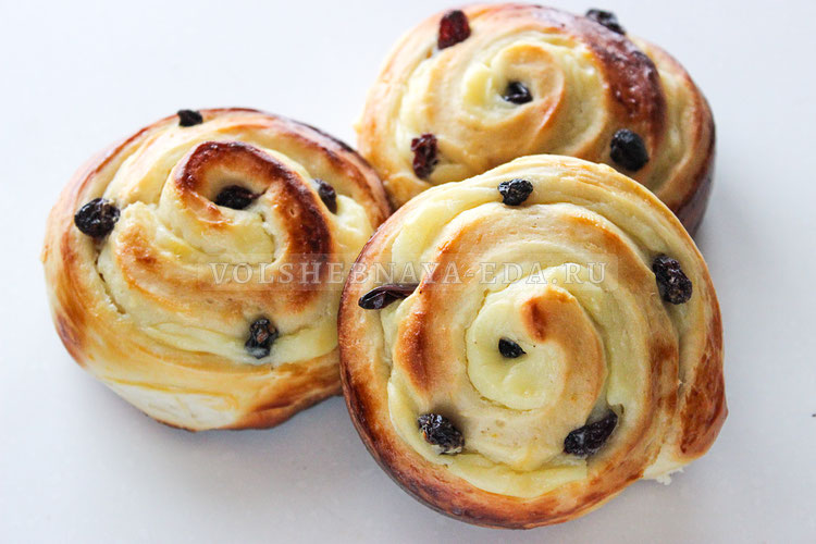 Рецепт домашних булочек с ванильным кремом. Очень ароматная выпечка! Булочки-завитки готовятся на дрожжевом тесте, которое замешивается опарным способом. Мякиш получается очень нежным и волокнистым. А за счет добавления цедры такие булочки потрясающе вкусно пахнут. Крем заварной, ванильный. для опары: для основного замеса: для крема: Для опары в 200 мл теплого молока развести 20 г дрожжей, добавить 1 ст. л. сахара и всыпать 6 ст. л. муки. Размешать, затянуть пленкой и убрать в теплое место на 20-30 минут. Для крема в кастрюлю с толстым дном влить 150 мл молока, добавить 1 яйцо, 80 г сахара и пакетик ванильного сахара, по 15 г муки и крахмала, размешать венчиком, чтобы не было комочков, а затем влить оставшиеся 150 мл молока, еще раз размешать. Варить, помешивая, до загустения. Снять с огня. Остудить крем. Чтобы на поверхности не образовалась корка, накрыть его пищевой пленкой в контакт. Можно приступить к основному замесу теста. Для этого в большую миску разбить пару яиц (один желток о
