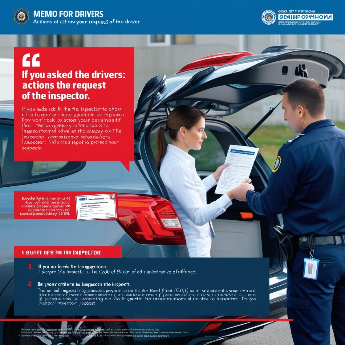 📝 Позаботьтесь о своей безопасности на дороге с этой полезной памяткой! Если инспектор обращается с просьбой открыть капот, багажник или двери вашего автомобиля, следуйте этим простым шагам, чтобы оставаться в курсе и защищенным: 4 Не забывайте о своих правах! В правилах дорожного движения (ПДД) не сказано, что вы обязаны выполнять устные требования инспектора без формального протокола. Стойте на своем! Проясните термины. Если инспектор говорит о «досмотре» и «осмотре», уточните разницу. Осмотр — это визуальная проверка. Предложите провести визуальный осмотр снаружи и заглянуть в салон через боковые стекла. 🚗👀 Эти советы помогут вам чувствовать себя уверенно и защищенно в любых ситуациях! Знание своих прав — это ключ к спокойствию на дороге. Будьте умны, соблюдайте закон и оставайтесь в безопасности! 🚦✨ 💬 Мы хотим услышать ваш опыт! Что вы делали в подобных ситуациях? Задавайте вопросы и делитесь своими историями в комментариях! #ПраваВодителей #Инспектор #БезопасностьНаДо