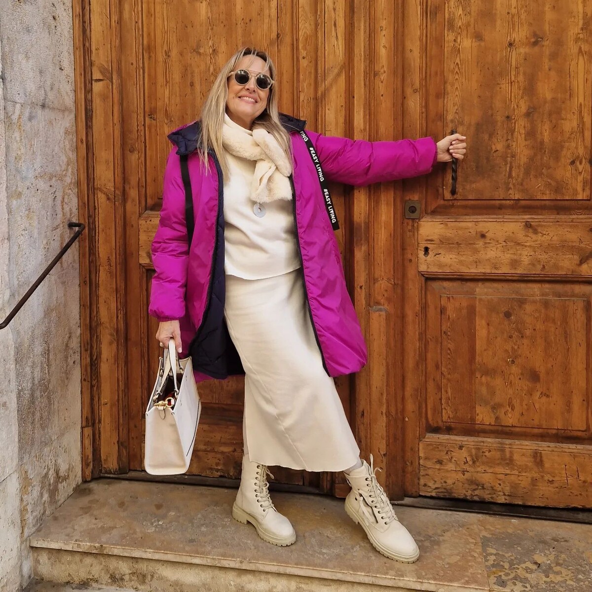 Светлый монохром элегантный в своей простоте! К тому же образ в светлых тонах заметно освежает, омолаживает зрелую внешность и образ в целом.