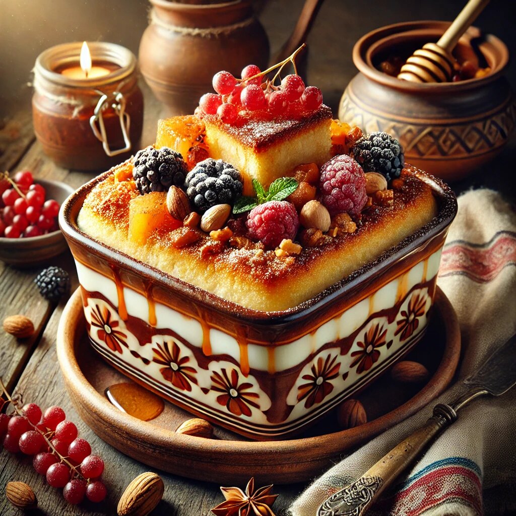 Гурьевская каша — это не каша, это сладкая сказка на тарелке. История этого блюда уходит в далекие времена, когда граф Дмитрий Гурьев, знаменитый гурман и ценитель изысканной кухни, поразился чудесному творению крепостного повара. Основой послужила манная крупа — ингредиент, казалось бы, ничем не примечательный. Но тут-то и начинается волшебство! Слои запеканки перемежаются взбитыми сливками, орехами, а поверх всего — карамелизированные фрукты, будто осколки летних садов. Подавать такую кашу — это как показать гостю старинную реликвию, кусочек другой эпохи. Когда берешь ложку, чувствуешь, как каша тает во рту, оставляя после себя сладкую дымку и легкий привкус орехов. Гурьевская каша — это десерт, который стоит попробовать хотя бы раз в жизни, чтобы поверить: чудеса случаются, даже если это всего лишь каша. Ингредиенты: Приготовление: