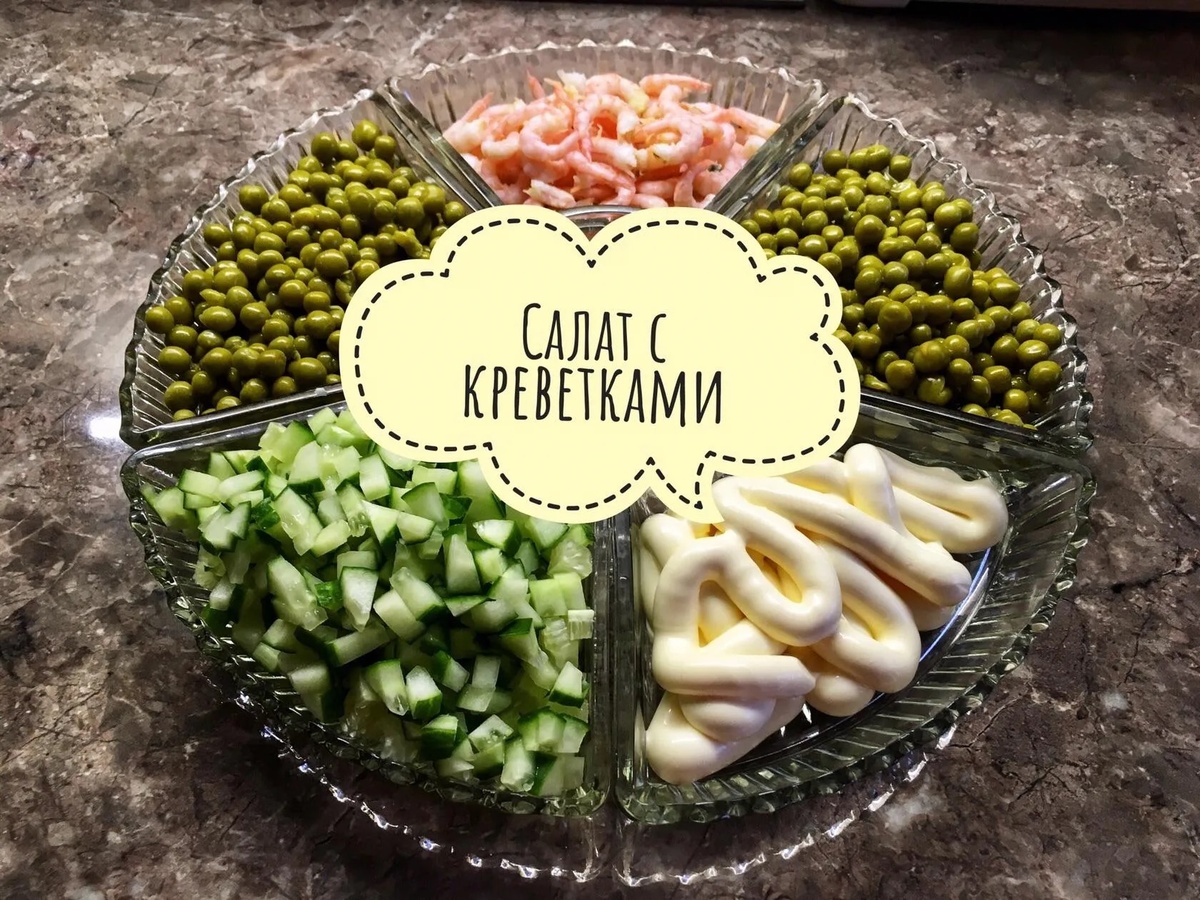 🥙 Нежный и лёгкий САЛАТ с КРЕВЕТКАМИ 🥒🦐🌱 👩🏻🍳 Ингредиенты: Огурец свежий, Горошек зелёный консервированный Креветки отварные очищенные Майонез Можно по желанию добавить варенные яйца Заправка-майонез Соль по вкусу. 👩🏻🍳 Перемешать все ингредиенты и заправить майонезом. Соль по вкусу. Приятного всем!!