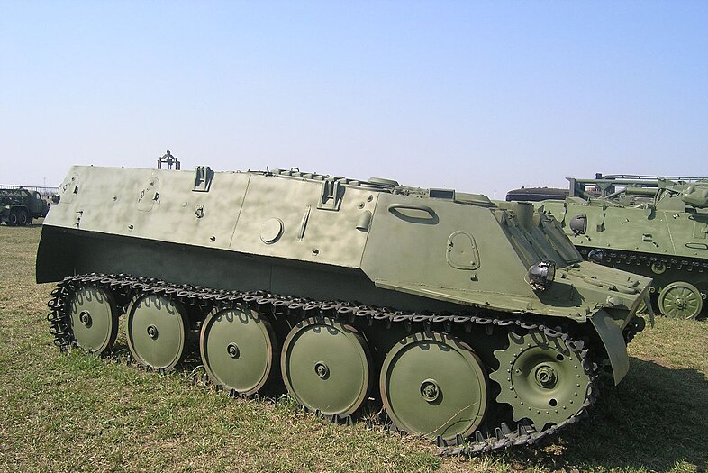 Итак, общие принципы я изложил, теперь - конкретика. В составе мотострелкового полка, пусть он хоть трижды на автомобильной технике и четырежды территориальных войск (забавно, а воюем, как настоящие!) нужен НОРМАЛЬНЫЙ зенитный дивизион. А не единственная батарея, да еще и "обрезанного" состава. Зенитная установка ЗУ-23-2, даже взбодренная на кузов ГАЗ-66, по БПЛА, применяемые противником - избыточна, неповоротлива и вкупе с машиной, скорее сама станет целью тех же ФПВ-дронов. Как же сохранить возможности по обстрелу, как у зенитки - мало ли, вдруг вертолет попадется - и в то же время, сделать огневое средство пошустрее в этом плане? Есть такой чудный аппарат - НСВТ, калибра 12,7 мм. То есть, в составе зенитного дивизиона должна быть зенитная пулеметная батарея - ЗенПулБатр. В составе двух взводов, каждый из которых - из трех расчетов, плюс командир взвода со своим "штабом". А сажать взвода нужно вот на это: Для тех, кто не в курсе: это ГТ МУ. Гусеничный тягач малый унифицированный. Бро