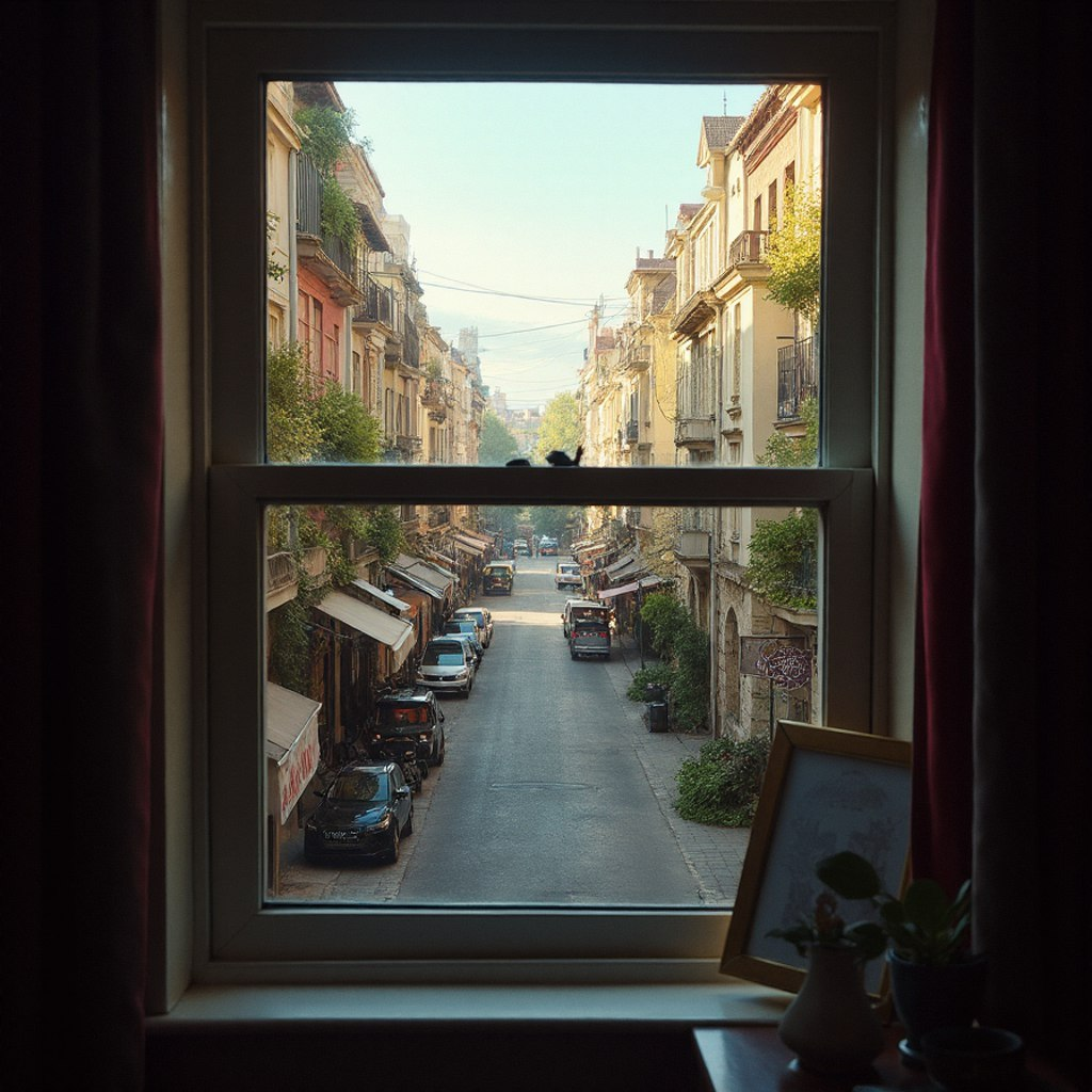 Когда я смотрю в окно, передо мной открывается настоящий мир. Этот вид стал для меня привычным и родным, но каждый раз я замечаю в нём что-то новое. Из моего окна я вижу маленькую улицу, с которой начинается моя жизнь за пределами дома. Летом улица наполняется яркими красками и звуками. Деревья, которые растут вдоль дороги, радуют глаз своим зелёным одеялом. Я люблю наблюдать, как солнечные лучи пробиваются сквозь листву, играя на тротуаре. Мимо проходят дети, смеются и играют в мяч. Их радость заразительна, и даже просто глядя на них, я чувствую, как настроение поднимается. Осенью всё вокруг становится золотистым и багряным. Листья, стремительно падающие с деревьев, образуют на тротуаре пёстрые ковры. Я люблю собирать эти листья и делать из них букеты. В это время года к дому приходят дует ветер, который развивает мою фантазию и заставляет думать о чем-то волшебном. Иногда за окном дождь, и капли стучат по подоконнику, создавая мелодию, которая успокаивает и заставляет мечтать. Зимой