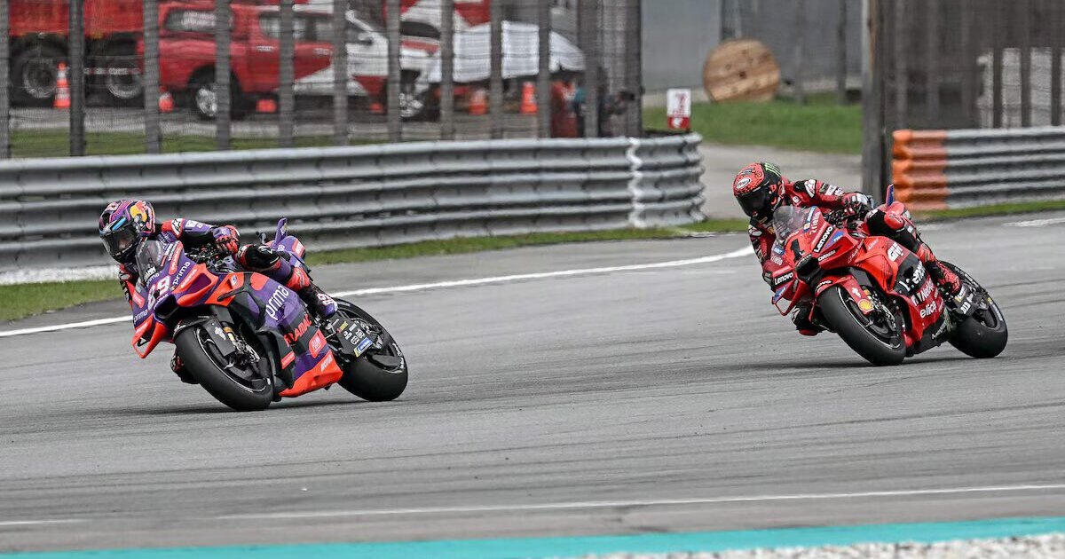 Пилот «Дукати» Франческо Баньяя выиграл Гран-при Малайзии MotoGP с поула. Гонщик «Прамака» и лидер сезона Хорхе Мартин жестко сражался с Баньяей за победу на протяжении нескольких кругов, после чего сохранял вторую позицию, третьим финишировал еще один представитель заводской «Дукати» Энеа Бастианини. Заезд прервали красными флагами после завала в первом повороте. Гонщик «КТМ» Джек Миллер не вышел на рестарт и был отправлен на обследование, однако избежал серьезных травм. Также в инциденте приняли участие его напарник Брэд Биндер (сошел позже) и пилот «Ямахи» Фабио Куартараро. Марк Маркес из «Грезини» преследовал двух лидеров, но допустил падение, откатился в хвост пелотона, а затем поднялся на 12-е место. Судьба титула решится на заключительном этапе сезона. Мартин опережает Баньяю на 24 очка, ему достаточно выиграть спринт в последний уик-энд года. MotoGP Гран-при Малайзии Сепанг Интернэшнл, Сепанг 3 ноября 2024 года Гонка 1. Франческо Баньяя («Дукати») – 19 кругов 2. Хорхе Мартин