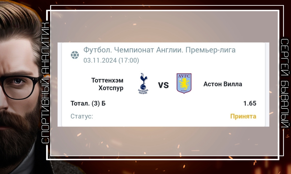 ⚽️Чемпионат Англии. Премьер Лига. Тоттенхэм - Астон Вилла 🧾Прогноз: Тотал Больше (3) 📈Коэффициент:1.65 💰Сумма пари: 7% от банка. Прогноз по Кф анализу. Смог найти 4 матча в Англии, в данных коэффициентных диапазонах. В каждом из них Тотал голов составил от 4 до 7. У обоих клубов хорошо поставлена атака. В 5 крайних турах дома Ттх забили 13 голов, пропустили 8. В 5 крайних выездах Астон Вилла забили 13, пропустили 5. Суммируя вышесказанное, Тб в данном матче выглядит весьма привлекательно.