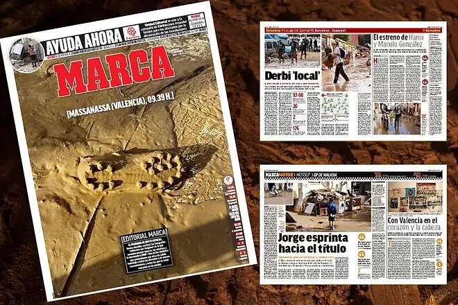 В конце октября 2024 года из-за проливных дождей в нескольких районах юго-восточной Испании, включая Валенсию и восточную Андалусию, произошли масштабные наводнения. В результате погибли по меньшей мере 205 человек. В королевстве объявили трехдневный траур. На обложку Marca поместила фото детской бутсы, утопающей в грязи после наводнения. «В выпуске от 3 ноября фотографии на всех страницах заменены изображениями последствий шторма в память о жертвах, волонтерах, спасательных командах и силах безопасности. 3 ноября 2024 года – воскресенье, когда сложно говорить о футболе, голах и ударах по воротам. Делаем это, как и положено такой спортивной газете, как Marca, но с комом в горле. Тот самый, который давил на нас с того рокового вторника, 29 октября, когда ужасный шторм обрушился на Испанию и провинцию Валенсия. На нашей обложке – детская футбольная бутса, утонувшая в грязи Масанасы, без заголовка, кроме места и даты, когда была сделана фотография, и краткой пояснительной редакционной зам