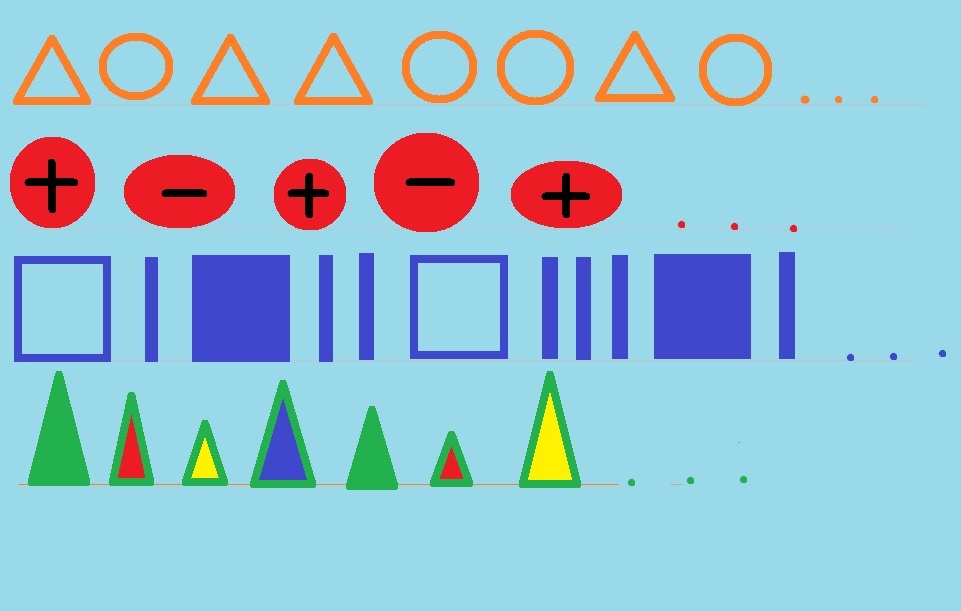 Предлагаю заняться гимнастикой для мозга на примере поиска несложных закономерностей в рядах из геометрических фигур и знаков. Задания любой сложности будут решаться легко, если с первого раза Вы замечаете закономерности в расположении предметов. Задания на поиск закономерностей посильны и полезны и для взрослых, и для детей. ____________ Достаточно внимательно приглядеться, чтобы и следующий ряд абстрактных знаков был продолжен: Это хорошо известное задание. Его легко решали представители доинтернетного поколения. Справились с заданиями? Пишите ответы в комментариях. В ребусе скрыта пословица: "Где хороший отец, там и сын молодец!" Развиваем мышление с помощью заданий из следующего раздела: #закономерности #логика #развитие логики #поиск закономерностей #головоломки #гимнастика для ума #зарядка для мозга