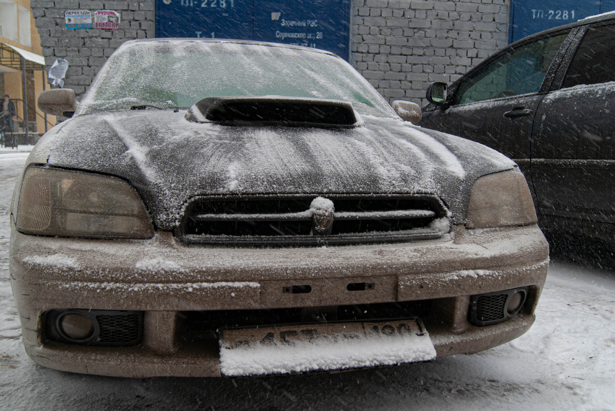 По первому снежку поехали смотреть турбированный Субарь Легаси В4 начала двухтысячных годов: два литра, 230 лошадиных сил, оппозитный движок – мощное во всех смыслах сочетание. Причем не только едет она мощно, но еще и сосет деньги из кармана владельца на обслуживание не хуже... По состоянию кузова тут говорить особо смысла нет: кузов весь в мелких и крупных коцках, ЛКП тут и там отслаивается, кое-где есть ржавчина, но кого это будет волновать, когда за 350 тысяч рублей, то есть по факту по низу рынка, продают 230 оппозитных лошадиных сил? Сама по себе машина изначально конструировалась очень прогрессивным для своего времени пепелацем. Всего с двух литров сняли аж 230 лошадиных сил, а в салоне столько опций комфорта, что ни в одном Солярисе сейчас не найдешь, хотя с момента выпуска прошло уже двадцать лет. Но годы все равно берут свое... Наверное вкладываться в кузов на такой машине уже особо нет смысла. Берут такие тачки чисто покататься, повозиться с ней в гараже, понять, что такое