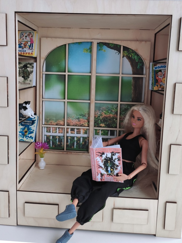 Девочки, я собрала уголок интроверта и спешу похвастаться. Ручки для уголка заказала на алли, а пока покажу без ручек. Есения решила вам показать его поближе: Мы даже немного заполнили полочки: Лина тоже пришла посмотреть: Также Лина решила полежать на кушетке, мы потом накроем ее шкурой "белого медведя" Вот от кого не ожидала, так это от Киры, что она сразу начнет звонить подружкам. Так старались пристроить телефон в руку, что оборвали провод. Мебель от Марии Roombox.shop [Домик в коробке]. Все объясняет можно сказать на пальцах. Так что если кто сомневается, берите, все собирается легко. Ну а кресла мы показывали здесь: Пока-пока.