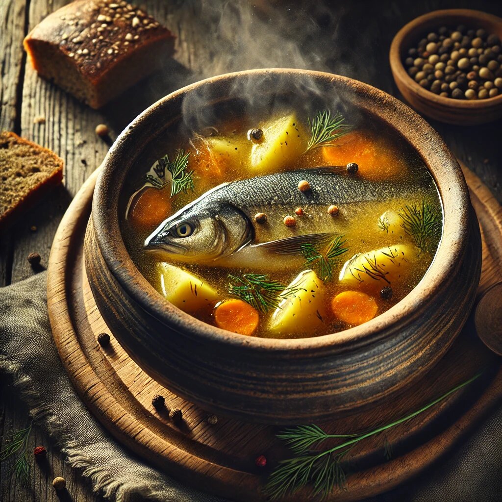 Описание: Уха — это не просто суп, это настоящий ритуал, блюдо с характером и историей. Когда-то рыбаки собирались у костра после долгого дня на реке и готовили уху, бросая в котелок все, что попадалось под руку: свежую рыбу, ароматные травы, щепотку соли. Уха — это напоминание о днях, проведенных на природе, о запахе костра, о водной глади, подрагивающей под лучами солнца, и о тишине, нарушаемой лишь плеском воды. Настоящая уха варится из трёх видов рыбы, каждая из которых вносит свою нотку в общий симфонический вкус: щука дарит бульону насыщенность, окунь добавляет нежность, а судак — легкую сладость. Всё это соединяется вместе, создавая прозрачный, как слеза, бульон, в котором каждая рыбная косточка, каждый листок зелени и каждая капля бульона становится частью единого целого. Готовя уху, будто совершаешь путешествие в далекое прошлое, к традициям, где каждое блюдо — это история, где каждый ингредиент — участник старинного ритуала. Уха — это вкус природы, вкусовая симфония, простая