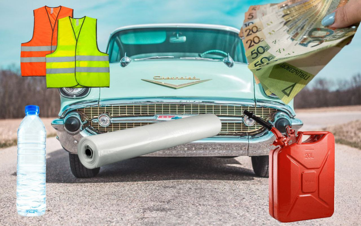 Наличные деньги, бутылка воды и канистра бензина — необходимые вещи для путешествия