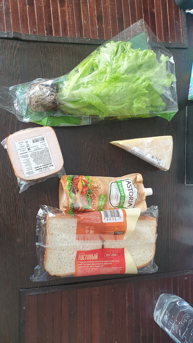 Я очень люблю сэндвичи. Заходишь такой в магазин и видишь: Прекрасные треугольнички в пластиковых коробочках заманчиво лежат и манят тебя и манят и манят... так стоп, о чём это я? Ах точно. И так сэндвичи - по сути это два куска квадратного хлеба, основная начинка(курица, ветчина, ростбиф, тунец), сыр, лист салата и соус(майонез, горчица, да всё что угодно.) Вроде всё просто, но возникает вопрос: так ли всё просто и не завышена ли цена на сэндвичи, которая сейчас составляет порядка 120-150 рублей за коробочку? Проверим. Покупаем: Тратим время на нарезку, намазку и одновременный просмотр сериала))) В общей сложности тратим минут 10-15. Я так же дополнительно использовал майонез, что бы смазать второй кусок хлеба. И вот сэндвичи готовы, можно оценить свои кулинарные предрасположенности. На фото видно, что я использовал только одну пачку тостов, но суть в принципе ясна и можно смело подсчитать общие затраты и предположительную стоимость. И так: И так получается 72 + 80 + 360 = 512р. Учит