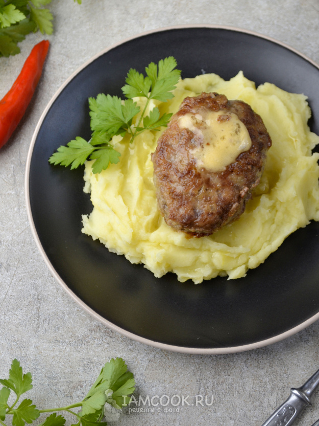 Как же это вкусно и по-домашнему: сочная котлетка с начинкой и пюрешка на гарнир