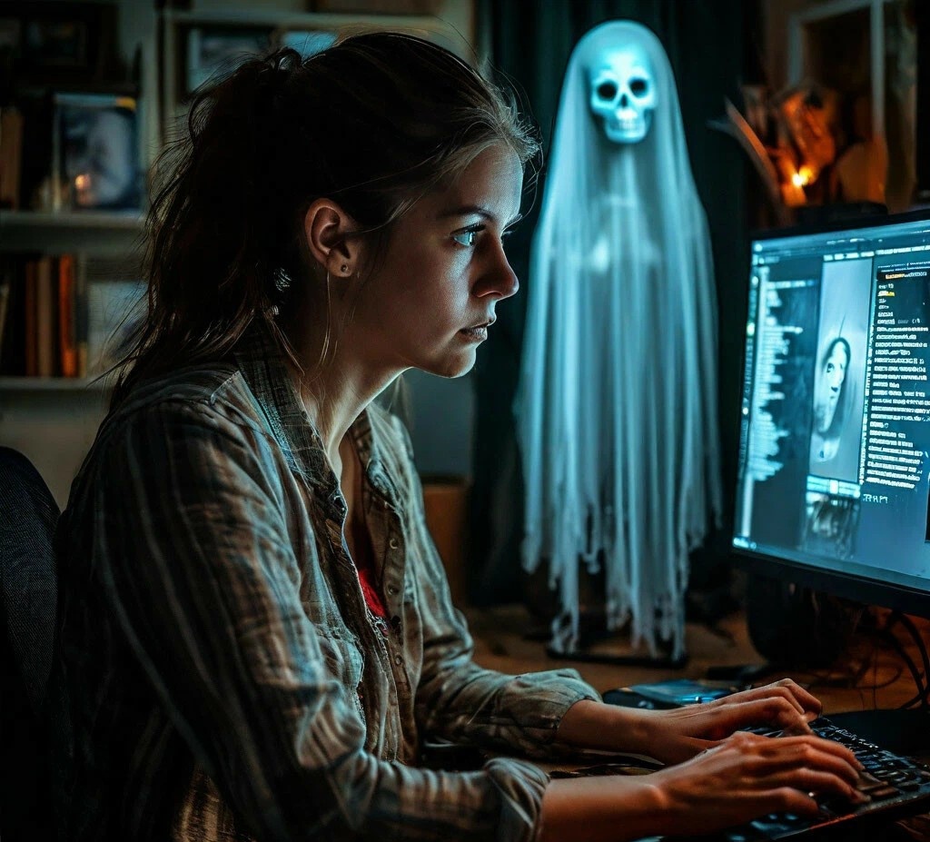 Я тихонько вошла в комнату. Мой зять сидел перед своим ноутбуком. Его лицо освещалось только монитором.