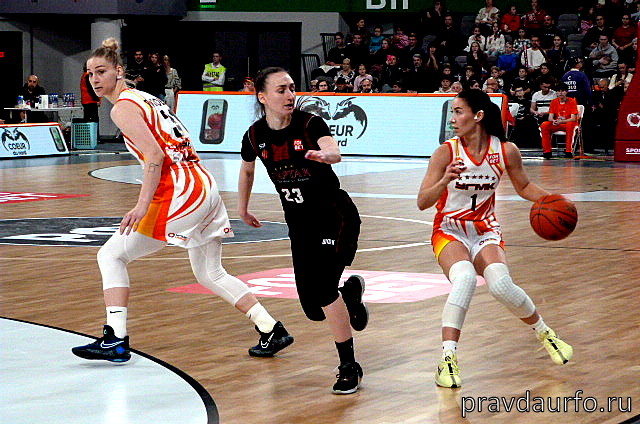 Баскетболистки УГМК одержали очередную победу в чемпионате Премьер-лиги. На домашней арене подопечные Дмитрия Донскова взяли верх над одним из аутсайдеров сезона – «Спартой энд К» из Видного. Однако игра сложилась для хозяек паркета тяжело. Совсем недавно, 19 октября, команды встречались в Подмосковье. Тогда БК УГМК не испытал особых проблем, обыграв «спартанок» с разницей в 31 очко и добравшись до трехзначного рубежа по набранным баллам. Новое противостояние началось не по сценарию екатеринбурженок, игравших, к слову, без Йованы Ногич и Евы Лисец . К началу 3-й минуты на табло значился счет 2:8, причем 4 балла гостьям принесла Софья Люлина. Действующие чемпионки понемногу разыгрались, при этом роль лидера на себя взяла Жосселина Майга. БК УГМК даже вырвался вперед, но в концовке пара точных трехочковых от Светланы Крамар обеспечили подмосковной команде лидерство по итогам десятиминутки – 22:25. Во второй четверти ситуация на площадке стала меняться. Игровой перевес перешел к «лисицам»