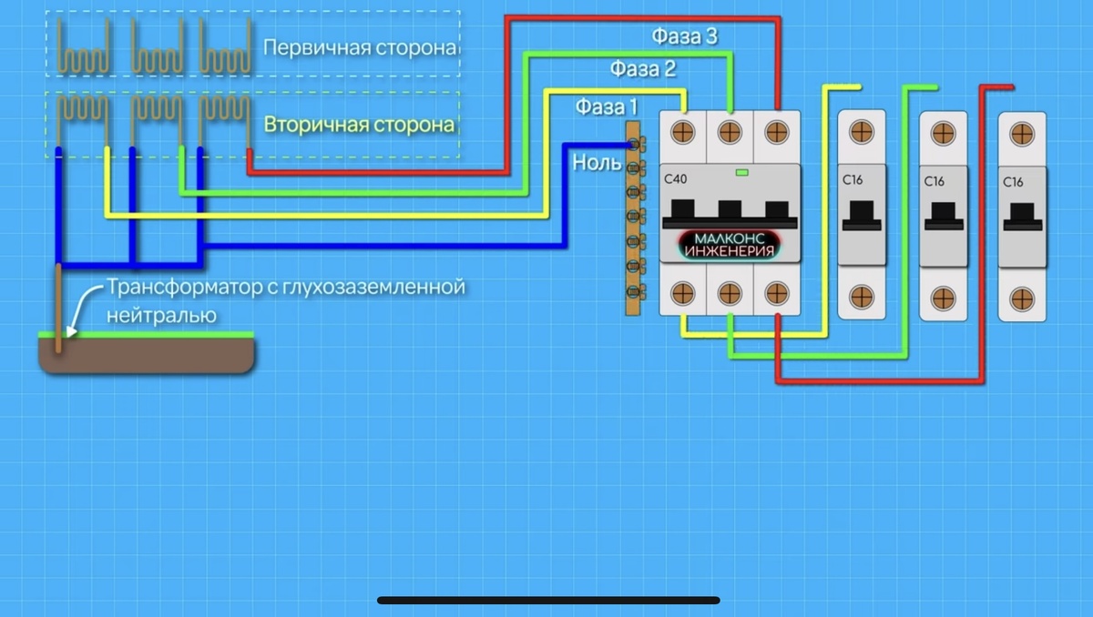 Здравствуйте друзья сегодня мы выясним для чего нужна нейтраль и течет ли по нему ток. Для полноты картины я возьму путь от трансформатора до потребителя, где мы имеем трансформатор, затем вводной автомат и 3 групповых автомата. В начале я подключу к первому автомату лампу ка кухне, ко второму лампу в гостиной, а к третьему лампу в спальне. Важным условием при этом является один номинал ламп, то есть потребляемая мощность. После этого включим одну лампу. Теперь замерим ток. На фазе я получу показания в размере 1,5 ампера, однако на нейтрали я получу примерно аналогичные значения, тем самым мы убедились что ток течет по фазе, проходит через нагрузку и возвращаясь обратно по нейтрали. Иногда мы можем встретить неверные убеждения что ток расходуется при нагрузке, на самом деле как говорит нам закон кирхгофа « Сумма всех токов, втекающих в узел, равна сумме всех токов, вытекающих из узла» А теперь оставим лампу на кухне включенной и дополнительно включим лампу в гостиной. При замере фаз