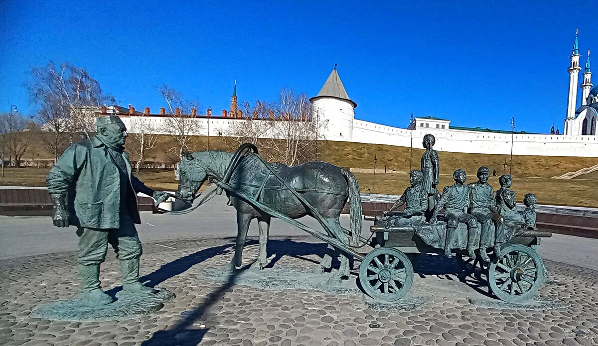В Казани мы уже во второй раз, и если первый раз цель посещения была исключительно туристическая, то сейчас цель поездки несколько иная, но естественно быть в Казани и не пойти гулять это очень глупо. Поэтому мы конечно отправились гулять по уже знакомым нам местам и, проходя мимо памятника Аскат-бабаю не смогли в этот раз сфотографировать так, чтобы никого возле него не было (а в прошлый раз сделали это без проблем). Сначала мы решили, что не будем отдельно рассказывать про этот душевный памятник и причину его установки, но потом, более подробно прочитав историю Асгата Галимзяновича Галимзянова решили все же сделать небольшую историческую справку, потому что, таких как он людей, становится, к сожалению все меньше, а вот недалеких людей все больше, но обо всем по порядку. Итак, как уже сказали в прошлую поездку в Казань мы конечно посетили основные достопримечательности Казани, гуляя возле Кремля, мы просто сначала обратили внимание на очень милый памятник с ребятишками в телеге, запря