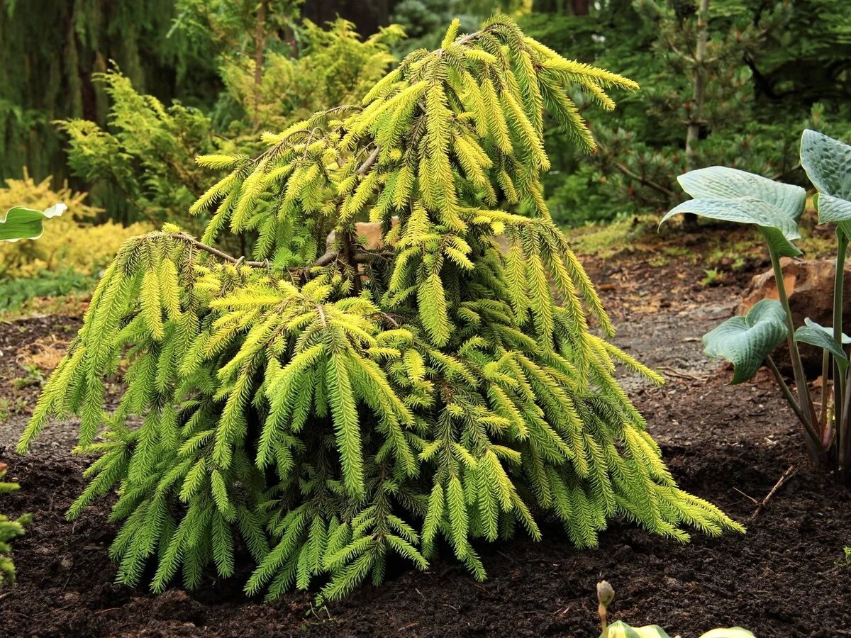 Ель обыкновенная Голд Финч (Picea abies Gold Finch) представляет собой привлекательное карликовое дерево с изящной стелющейся формой кроны, которая иногда приобретает очертания широкого неправильного конуса с ниспадающими ветвями. Высота растения к десяти годам составляет около одного метра, хотя в штамбовой форме рост может варьироваться в зависимости от места прививки. Хвоя имеет оттенки от ярко-желтого до оливкового зеленого, а молодой прирост отличается золотистым цветом. Эта разновидность ели обладает высокой морозостойкостью и способна выдерживать температуру до -40°C, что делает её подходящей для выращивания даже в регионах с суровыми зимами. При посадке ели Голд Финч следует учесть несколько важных моментов: