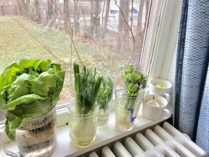 Для получения «зимней» зелени используют корневые сельдерей и петрушку, салатные цикории - витлуф и эндивий, спаржу, ревень, мангольд, столовую свеклу, шалот, репчатый и многолетние луки. Посадочный материал должен быть здоровым, выравненным и вызревшим - такой заготавливают до наступления устойчивых холодов. С выкопанных растений аккуратно, сохраняя почки, срезают стебли и листья (кроме многолетних луков, у которых их полностью сохраняют, у сельдерея и ревеня оставляют черешки длиной 3 см), корни укорачивают на треть. Если корневища спаржи и ревеня очень крупные, их следует разделить на несколько частей. До выгонки корнеплоды, корневища и луковицы держат в ящиках с песком или опилками, полиэтиленовых пакетах или сразу же высаживают в необходимые емкости. Хранят в погребе при температуре 1-3º и относительной влажности воздуха 65%. Луки высаживают в неглубокие деревянные ящички и горшочки, а остальные культуры - в горшки высотой 15-25 см или ведра так, чтобы деленки или корнеплоды были