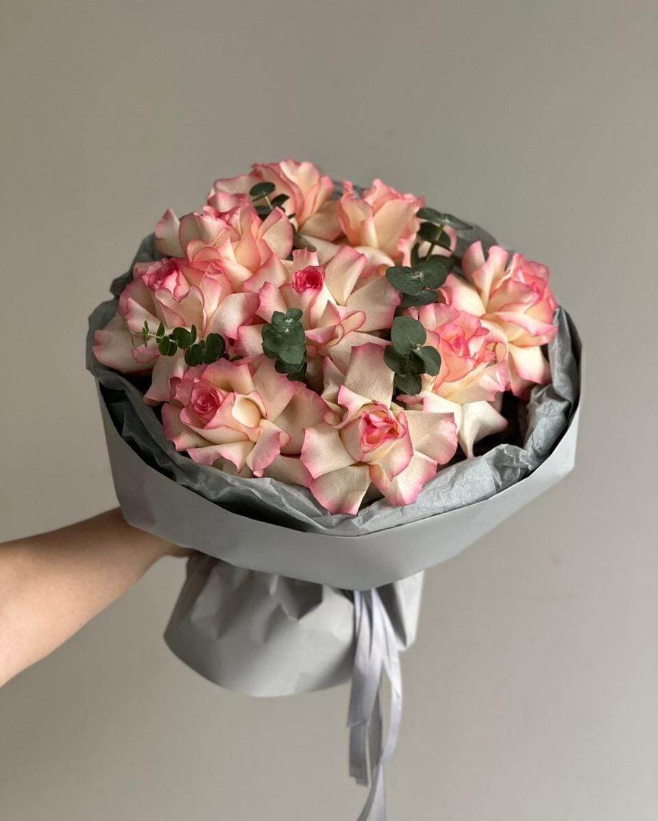Французская или вывернутая роза – это уникальный элемент в современном мире флористики. Лепестки розы словно вывернуты наизнанку, что придает чашечке необычный и пышный вид. Букет из 5 французских красных роз, которые очень похожи на пион розы, оформлен в дизайнерскую упаковку. Французские розы отличаются особой стойкостью и будут радовать получателя минимум 7 дней.