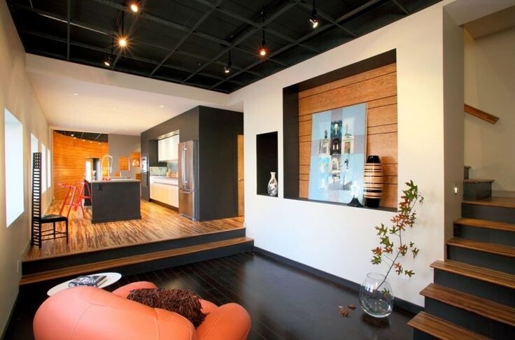 Этот вопрос поступил от Олега Ц. из Алтуфьево: Что делать, если ламината не хватает, а нужный артикул снят с производства? Отвечаем Если нет уже ни такого рисунка, ни такого замка - можно выбрать контрастный ламинат и сделать зональное деление: это очень актуальный сейчас дизайнерский прием, который заключается в визуальном разграничении помещения, со стеллажом вместо глухой перегородки. Разный стиль подчеркнет контраст. Например, две трети комнаты оформлены в стиле стимпанк и в холодных тонах, а треть - в классическом стиле и в теплых тонах. Или половина спальни - прованс, а рабочая половина - техно. Перемещаясь из одной части в другую, мозг подсознательно переключается и отдыхает, при этом нет эффекта клетушек, загроможденности. Границу напольного покрытия между этими зонами нужно будет проложить через порожек, либо ступеньку или подиум, если высота потолков позволяет. Если в продаже закончился ламинат с нужным рисунком, но есть другой с такими точно замками (этот момент нужно проя