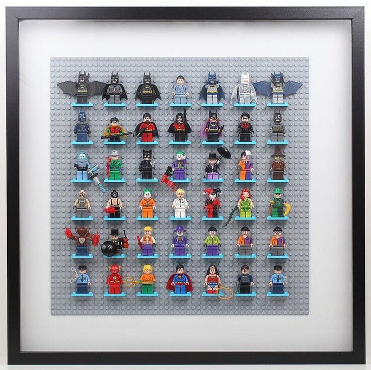 С самой рамкой никаких секретов нет. Я просто сажал на клей базовую пластину 32х32 на заднюю панель, а фигурки размещал на подставки (элемент 88646 Tile, Modified 3 x 4 with 4 Studs in Center), которые крепил перпендикулярно к плоскости пластины. Все очень просто. Идея возникла сама по себе, и я не готов вспомнить, чтобы в на рубеже 2014-2015 годов вопрос о рамках обсуждался в принципе, не говоря о том, какое значение он приобрел в наши дни. Самые первые фигурки в рамках были вынуты из коробок вот уже как десять лет назад. Последние я добавлял, помнится, летом 2017 года, а спустя год основательно прекратил свои рамки наполнять новыми фигурками.