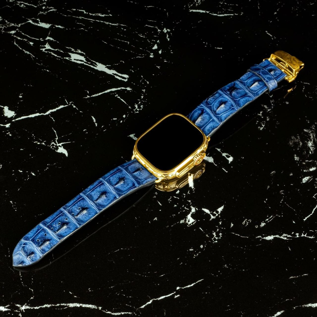 Apple Watch Ultra 2 Gold Edition 18K с ручной гравировкой и синим ремешком из кожи крокодила — это эксклюзивная версия умных часов от Apple, созданная для ценителей роскоши и высоких технологий. Эта эксклюзивная модель доступна для заказа на Яндекс Маркете. Следует отметить, что такие модификации обычно выполняются сторонними компаниями и могут повлиять на гарантию устройства.