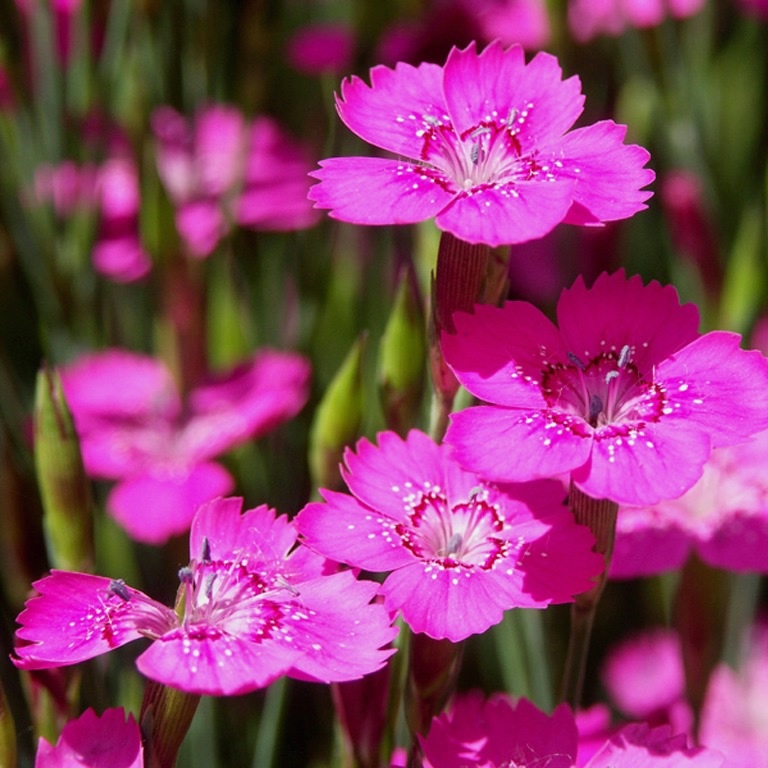 Этот нежный цветок привносит в любое пространство несравненно яркое цветение, которое длится почти все лето. Небольшие кустики формируют плотные " подушки" с тонкими листиками и изящными цветками. Этот эффектный многолетник - гвоздика-травянка. Помимо длительного цветения, ценится также за неприхотливость и выносливость. Высота растения составляет всего 20-30 см, зато в ширину разрастается от 30 см до 1 метра в диаметре. Цветки гвоздики-травянки некрупные, диаметром всего до 2 см, с зубчатым краем. Окраска бывает белой, красной, и всевозможных оттенков розового. Кайма у основания лепестков придает цветочкам выразительности. Растение нуждается в хорошем освещении - только при ярком солнечном свете кустики порадуют обильным цветением. Почва подойдет практически любая, главное, чтобы она хорошо пропускала влагу; плодородность не имеет значения, так как цветок хорошо растет на бедном, даже каменистом или песчаном грунте. Поливают-гвоздику травянку умеренно, - она, конечно, очень хорошо