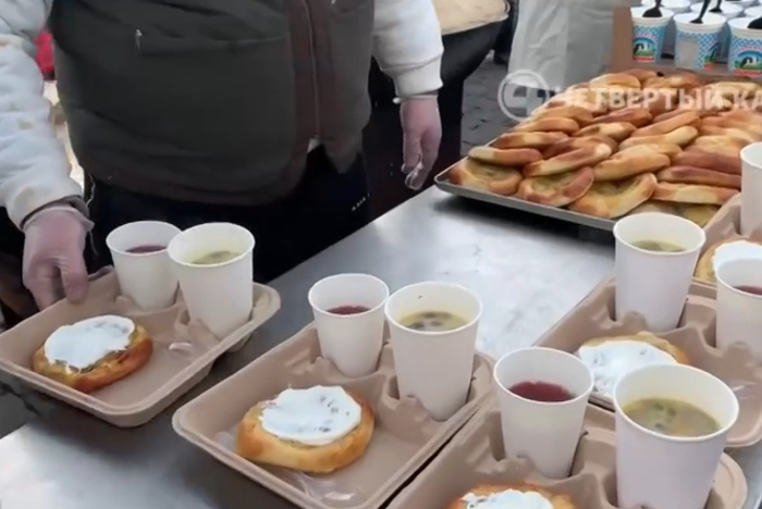 В центре Екатеринбурга приготовили 400 литров супа и 1000 шанег