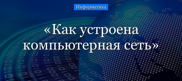 Основы информационно-коммуникационных технологий изучаются в курсе информатики 9 класса. Кратко о том, как устроена компьютерная сеть, рассказано в данной статье. Вопрос передачи информации в настоящее время решается через использование компьютерных сетей. По компьютерной сети осуществлять обмен информацией на больших расстояниях можно в течение нескольких секунд. Также посредством сетевой организации можно реализовывать совместное использование технических средств, например, принтеров, а также программного обеспечения и баз данных. Через сетевую коммуникацию удобно проводить групповую работу над каким-либо проектом или удаленно управлять абонентами в сети. Устройство компьютерной сети Компьютерная сеть включает в себя следующие компоненты: Абонентские системы состоят из потребителей информации – абонентов, и станций, представляющих собой устройства, которые выполняют прием и передачу информации. Для того, чтобы компьютер, подключенный к сети мог участвовать в информационном обмене, не