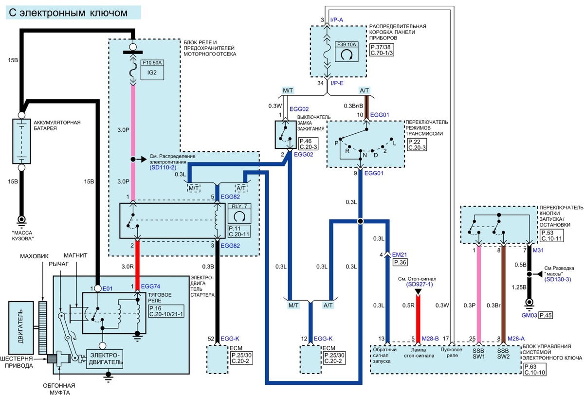 Схема системы запуска с электронным ключом. Схема системы запуска без электронного ключа. Если педаль тормоза для автомобилей с АКПП и педаль сцепления для автомобилей с МКПП не нажата при нажатии кнопки запуска-остановки, переключение состояния OFF ACC ON OFF state продолжается, но двигатель не может быть запущен.