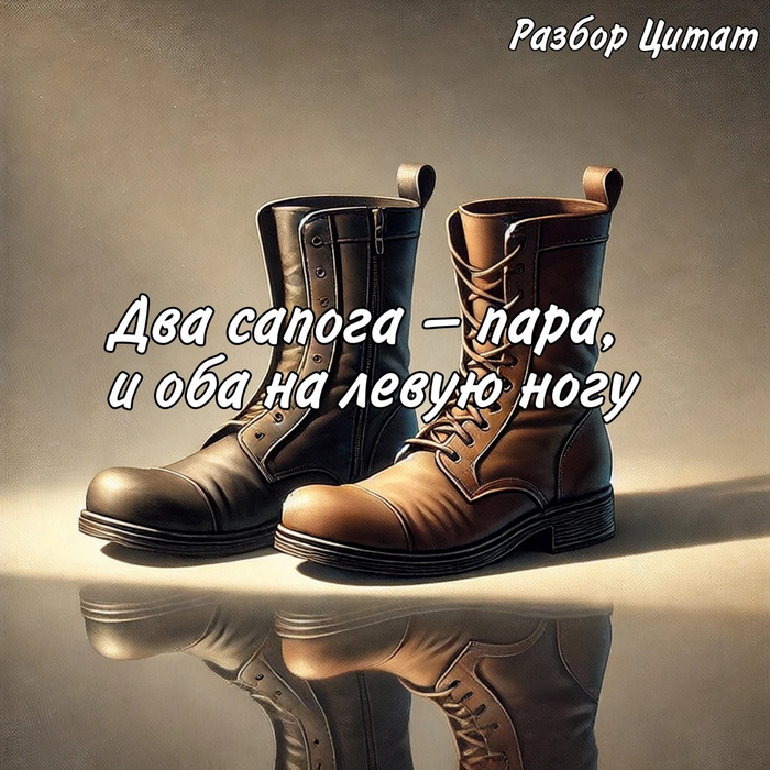 Цитата «Два сапога — пара, и оба на левую ногу» в своей основе передает важное наблюдение о том, что не всякое внешнее сходство приводит к гармонии. Представьте себе пару сапогов, которые кажутся одинаковыми, но оба предназначены для одной ноги — это сразу вызывает улыбку и понимание того, что такая пара абсолютно бесполезна. В жизни такое часто встречается: люди или объекты могут внешне казаться совместимыми, но на деле — быть совершенно не приспособленными для работы вместе. Эта цитата как раз высмеивает именно такие ситуации, указывая на то, что не всякая схожесть помогает достичь результата, иногда она даже может усугубить проблему. 🤔