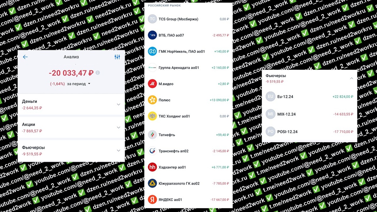 За торговую неделю с 28 октября по 2 ноября 2024 года я потерял 20 033 рубля. Денежный убыток составил 2 644 рубля, включая комиссии за плечо и сделки. На прошлой неделе рынок продолжил падать, так как на нём царил пессимизм и никто не надеялся на улучшение ситуации. Никакого «Трамп-ралли» не произошло, и мы продолжаем двигаться вниз. Акции принесли убыток около 7 869 рублей. Самой доходной акцией был «Полюс», а наибольший убыток принёс «Яндекс». Фьючерсы принесли убыток в размере 9 519 рублей. Так как плавная девальвация продолжается, фьючерс на евро принёс хороший доход. Из-за неудачной игры с шортом фьючерсов на индекс Московской биржи у меня сейчас убыток. Если рассматривать месяц, то в этом месяце мы потеряли 5 % от нашего капитала, или 74 237 рублей. 11 586 рублей ушло на оплату комиссий за сделки и плечо. Акции принесли основной убыток, самые убыточные оказались акции «ЮГК» и «Яндекс». В этом месяце я больно не шортил, я не ожидал, что ключевую ставку повысят, надеялся на позит