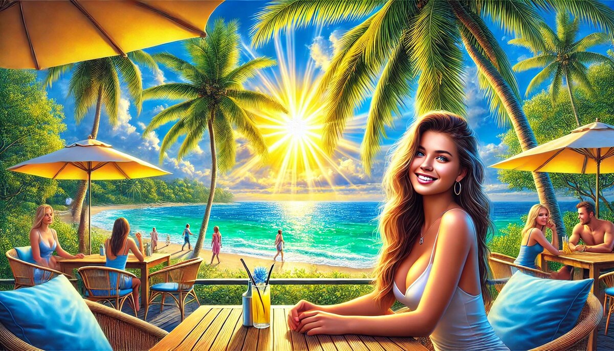 Девушки расположились под зонтиком, наслаждаясь теплотой моря, чистотой пляжа, звуками музыки, радостными криками отдыхающих и просто ощущением жизни, молодости и беззаботного отдыха.