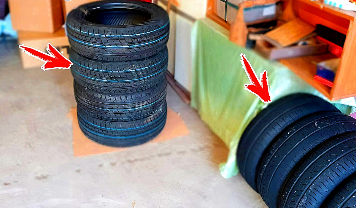 Но и шины, сложенные стопкой, желательно повернуть на 90-180, изменив зону соприкосновения с полом.