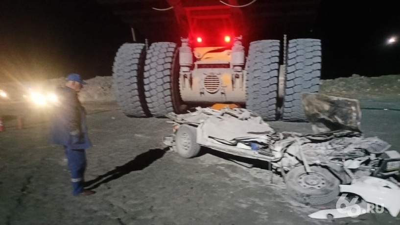 - БелАЗ раздавил двух человек на предприятии ЕВРАЗ в Качканаре. Они находились в УАЗе и заехали в слепую зону БелАЗа.