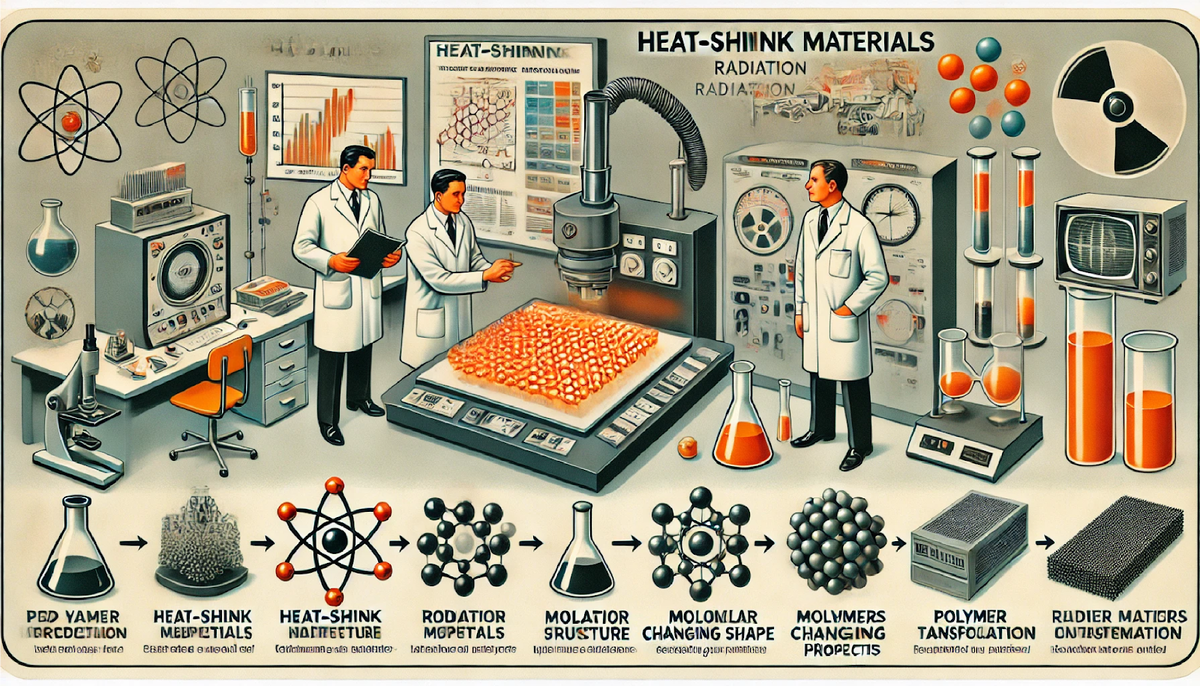 Прорывной шаг в развитии термоусадки произошел благодаря радиационной обработке полимеров, что позволило создать материалы с уникальной "молекулярной памятью". При воздействии радиации внутри полимеров возникали новые химические связи, и материал "запоминал" свою форму, возвращаясь к ней при последующем нагревании. Так, материалы могли стабилизироваться в растянутом состоянии, а при нагреве восстанавливать исходную форму, обеспечивая плотное прилегание к поверхности. Уже в 1960-е годы технология термоусадки распространилась на Европу и Азию, где также начались разработки собственных термоусаживаемых материалов. К 1970-м годам термоусадочные трубки и другие изделия активно использовались в условиях высоких температур, влажности и агрессивных сред.