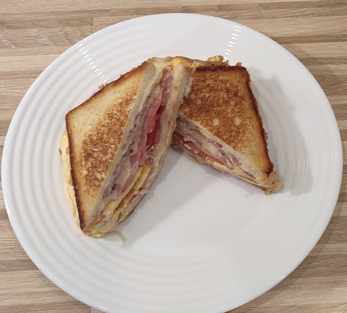 Хотите попробовать что-то новое и необычное на завтрак? Тогда этот сэндвич для вас! Он сочетает в себе хрустящий бекон, ароматную колбасу, нежное яйцо, тянущийся сыр и сочный помидор. Всё это вместе создаёт неповторимый вкус, который точно не оставит вас равнодушным. Ингредиенты: Приготовление: Затем добавьте сыр сверху. В сковороду залейте взбитые яйца. Добавьте хлеб и когда сыр начнёт плавиться, аккуратно переверните сэндвич и положите его хлебом вниз. Жарьте несколько минут, пока сыр не расплавится, а нижняя часть хлеба не подрумянится. В это время кладём сыр, колбасу и помидоры на кусочки хлеба. Поливаем любимыми соусами и заворачиваем кусочки омлета на хлеб. Далее складываем сэндвич пополам и даем ему подрумянится. 3. Подача. Готовый сэндвич можно разрезать пополам и подавать горячим. Он идеально подойдёт для завтрака или перекуса. Этот сэндвич с беконом, колбасой, яйцом, сыром, помидором и яйцом — отличный способ разнообразить свой утренний рацион. Сочетание хрустящих