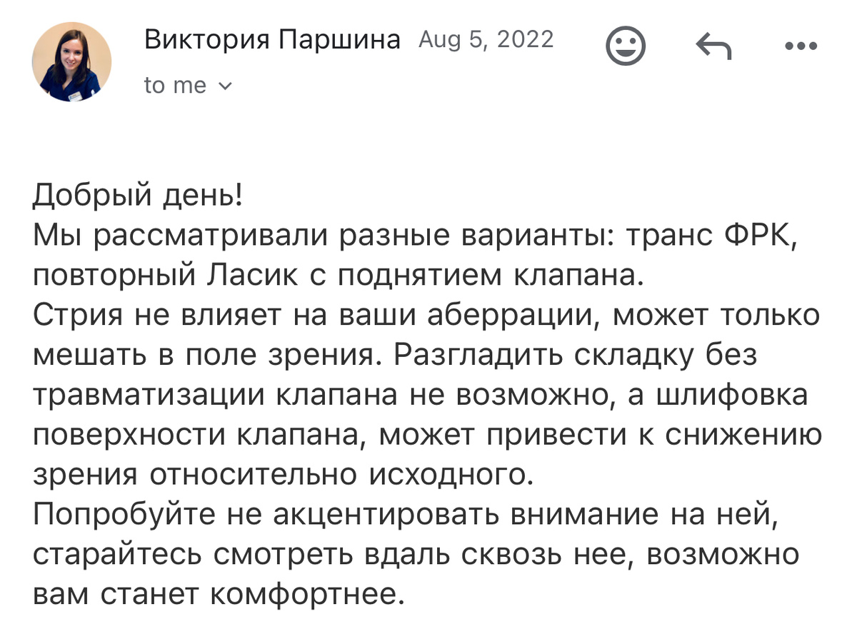 Отзыв на врача офтальмолога Викторию Паршину и профессора Эскину, клиника Сфера Бутово от пострадавшего операции лазером