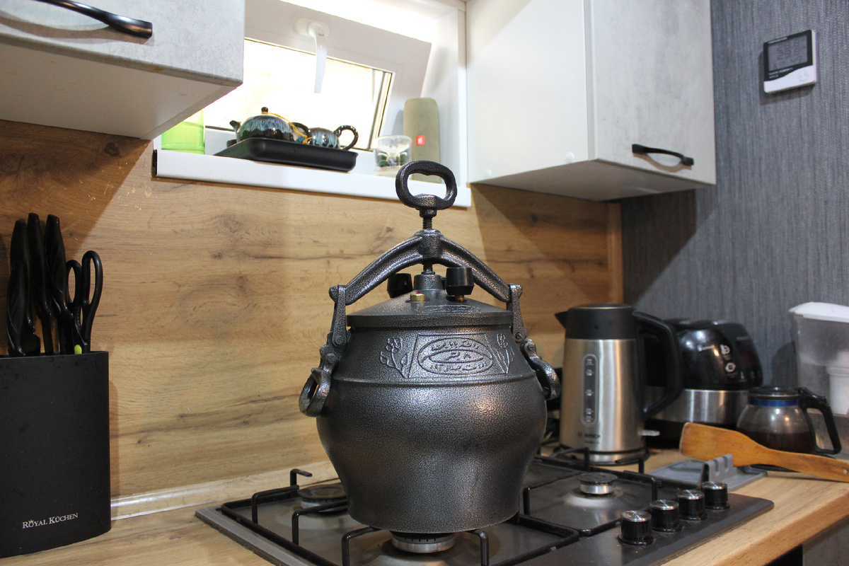 Готовить в чудо горшочке можно: на костре, на углях, на газовой плите, одним словом хоть где, кроме индукционной плиты. Да и на ней можно! Если у вас есть переходник, ведь изделие выполнено из алюминия. Кто-то готовит дома, чтобы всегда оставался товарный вид. Ведь когда он постоит на костре, копоть отмывать не совсем хочется. Да и аромата костра в готовом блюде вы не почувствуйте, потому что ваше блюдо плотно закрыто крышкой. Для таких дел есть узбекский, чугунный казан! А другие наоборот покупают исключительно для природы. Тут каждому свое. Плюсы на природе: компактный размер, быстрота приготовлении, ну и конечно же над ним не надо стоять как над узбекским казаном. Загрузил продукты, закрыл крышку и занимайтесь своими делами. Особо актуально на даче. Дел выше крыши, времени готовить нет, а вкусно отобедать хочется. Объемы афганских казанов разные, от малого до великого. Да и объем завышен, по факту он меньше чем заявлен производителем. Клапаны со временем могут придти в негодность (потрескаться, расколоться и т.д.) но это не беда, на маркетплейсах их вагон и стоят совсем не дорого.