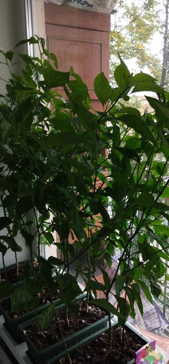 Здравствуйте! Начнем канал с перцев, очень острых перцев! По неопытности посадил несколько перцев в одну небольшую тару Опять же по неопытности подрезал не правильно, вымахали кусты, с цветами которые не завязывались, из 12 кустов на фото сортов там Нага, Каролина, Скорпион, Хабанеро и Призрак (Профи не пинайте, я рассказываю как начинал и как это называлось для меня в то время), по итогу начала завязываться Нага вайпер ред, счастью не было границ, по не многу конечно, но началось!