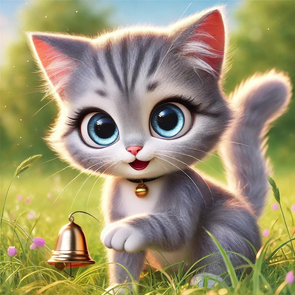 В одном уютном дворике с раскидистыми деревьями и узкими тропинками жили-были котёнок Мур-Мяу и его подруга, серая кошечка Дыся. Однажды, в солнечный день, Дыся решила взять с собой из дома любимую игрушку — серебристый колокольчик, который принадлежал её хозяевам и обычно висел на дверце. Звонкий колокольчик так весело позвякивал, что кошечке хотелось играть с ним и на улице.