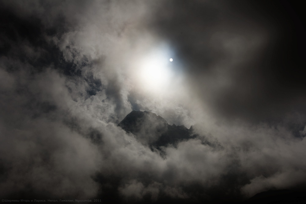 Если пойдёт сильный дождь, в ложбину Нгозумбы хлынет вода со склонов. Камни станут скользкими. Начнёшь падать сам, а сверху ещё больше посыпется. Что-то нам это не очень нравится. Но в небесной канцелярии сжалились, и вместо дождя наслали похолодание и туман. Это однозначно лучше.