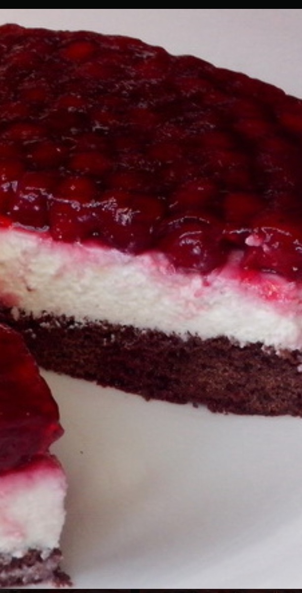 - Вишню разморозить и сок слить, достать торт из холодильника