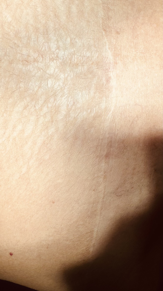 На фото представлен рубец через 1 год после абдоминопластики.