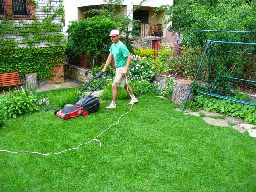 - Обрезка: Как только трава вырастет до высоты 5-7 см, начните ее стричь. Старайтесь не срезать больше одной трети высоты травы за раз.